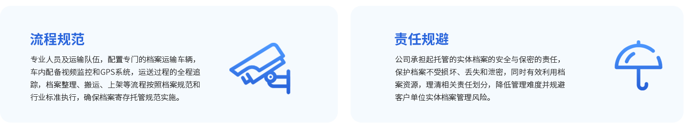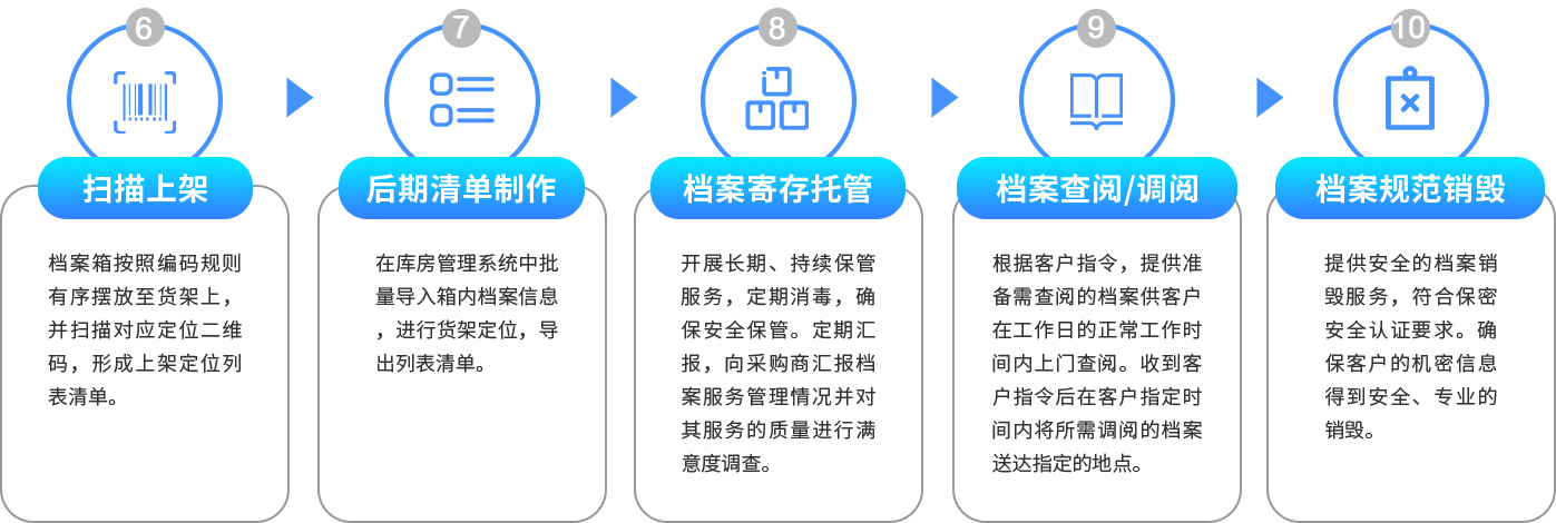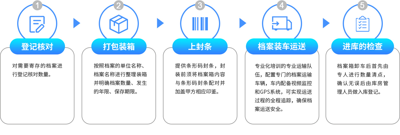 檔案寄存托管服務(wù)內(nèi)容:登記核對(duì)、打包裝箱、上封條、檔案裝車(chē)運(yùn)送、進(jìn)庫(kù)的檢查、掃描上架、后期清單制作、檔案寄存托管、檔案查閱/調(diào)閱、檔案規(guī)范銷(xiāo)毀。
