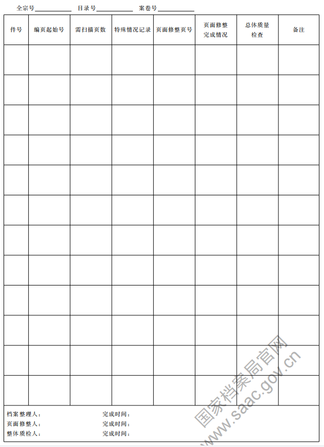 表B.2 紙質(zhì)檔案數(shù)字化流程單
